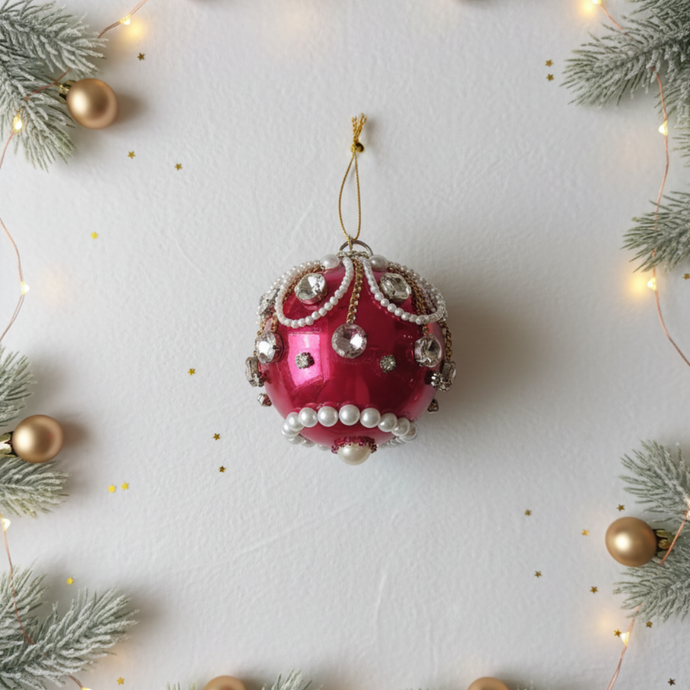 Set of 8 Classic Christmas Cheer Beaded Ornaments