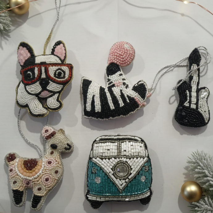 Set of 4 Whimsical Holiday Charm Beaded Ornament