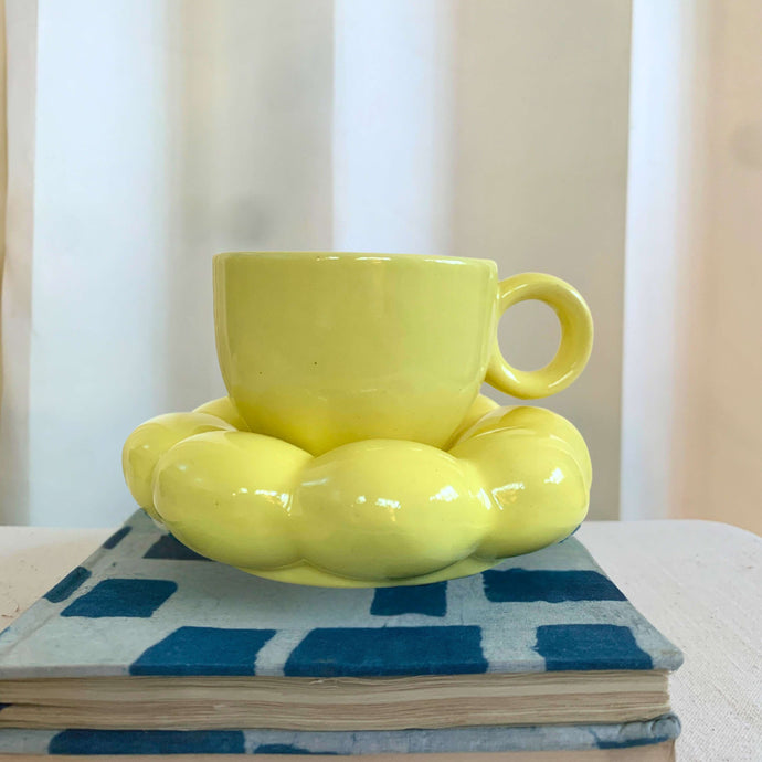 Sunbeam Bloom: Handcrafted Ceramic Cup & Saucer Set